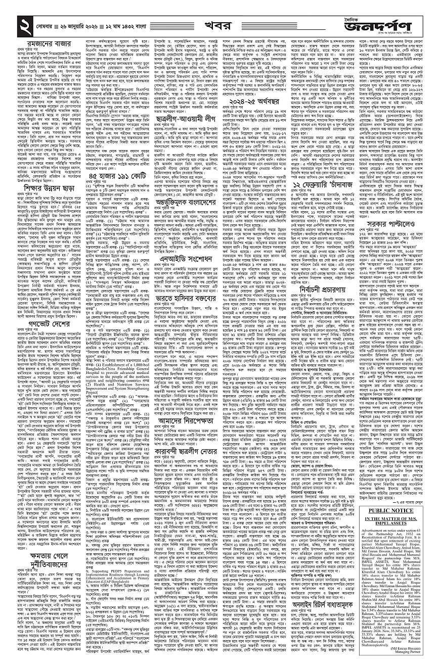 Janadarpan Page: 2 January 26, 2026 1 2 3 4 Page 1Page 2Page 3Page 4Page 5Page 6Page 7Page 8 × Janadarpan 12345678 << First << 2 >> Last >> Page no 1Page no 2Page no 3Page no 4Page no 5Page no 6Page no 7Page no 8