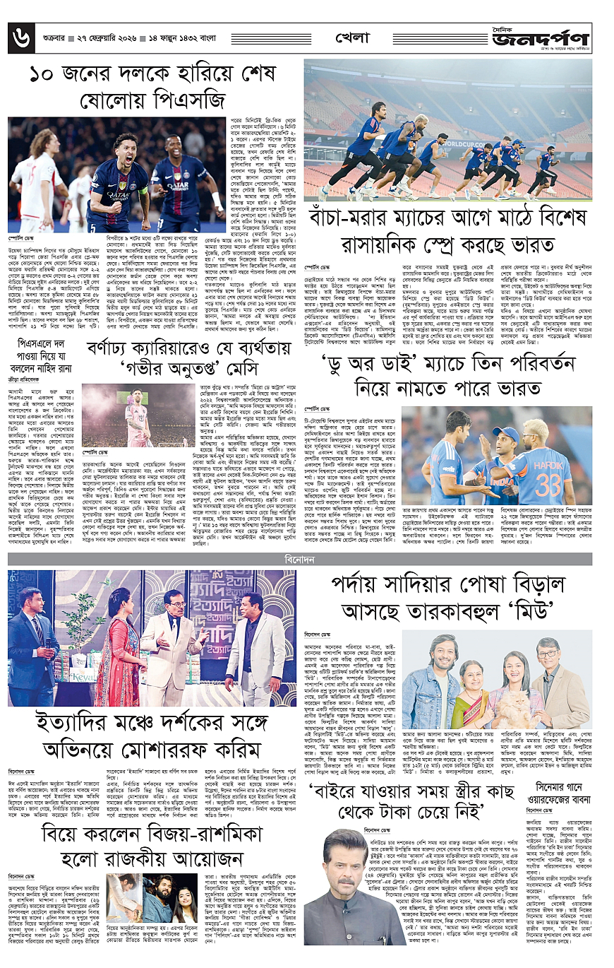 Janadarpan Page: 6 February 27, 2026 4 5 6 7 Page 1Page 2Page 3Page 4Page 5Page 6Page 7Page 8 × Janadarpan ১২৩৪৫৬৭৮ << First << 6 >> Last >> Page no 1Page no 2Page no 3Page no 4Page no 5Page no 6Page no 7Page no 8