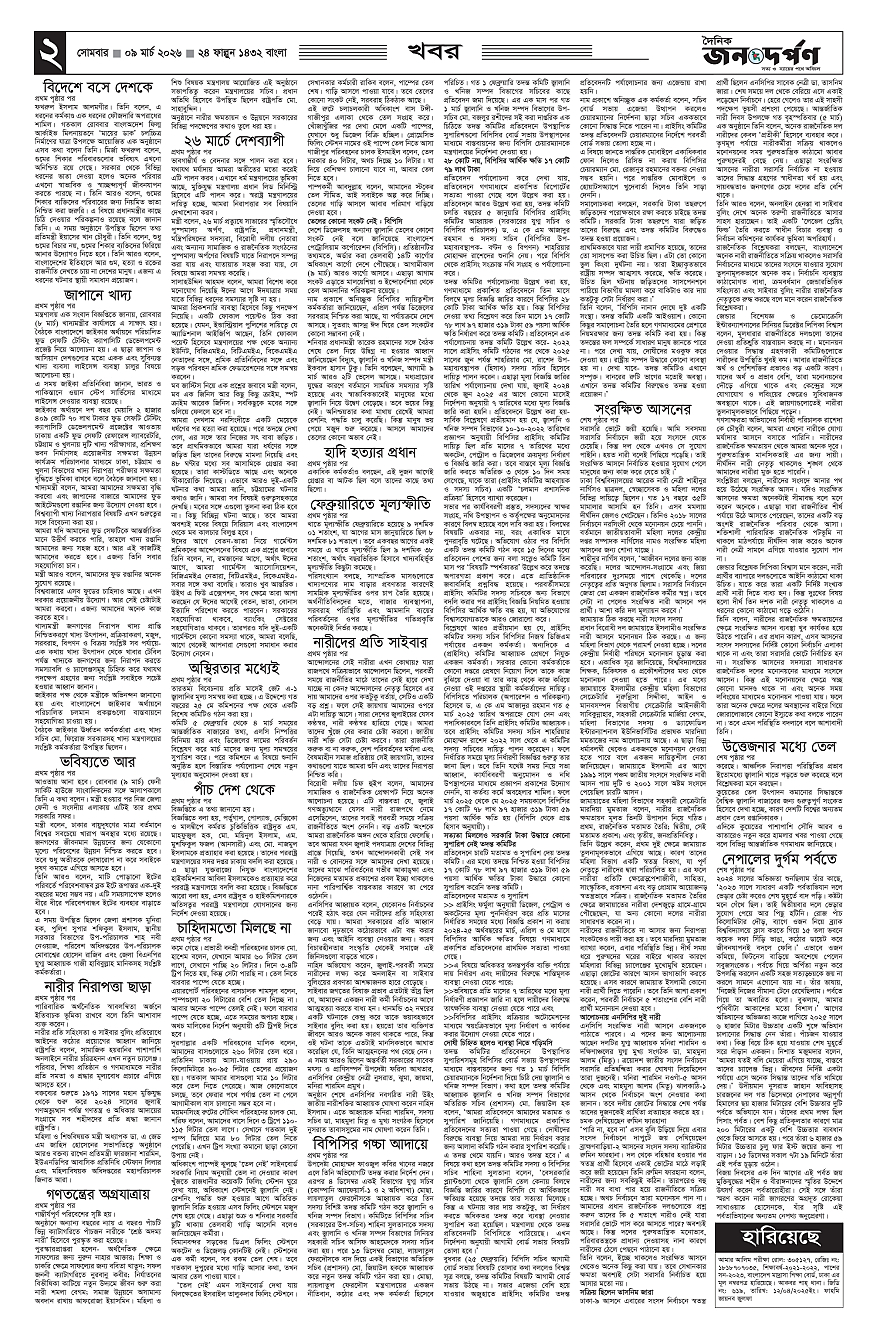 জনদর্পণ Page: 2 March 09, 2026 1 2 3 4 Page 1Page 2Page 3Page 4Page 5Page 6Page 7Page 8 × জনদর্পণ ১23456৭৮ << First << 2 >> Last >> Page no 1Page no 2Page no 3Page no 4Page no 5Page no 6Page no 7Page no 8