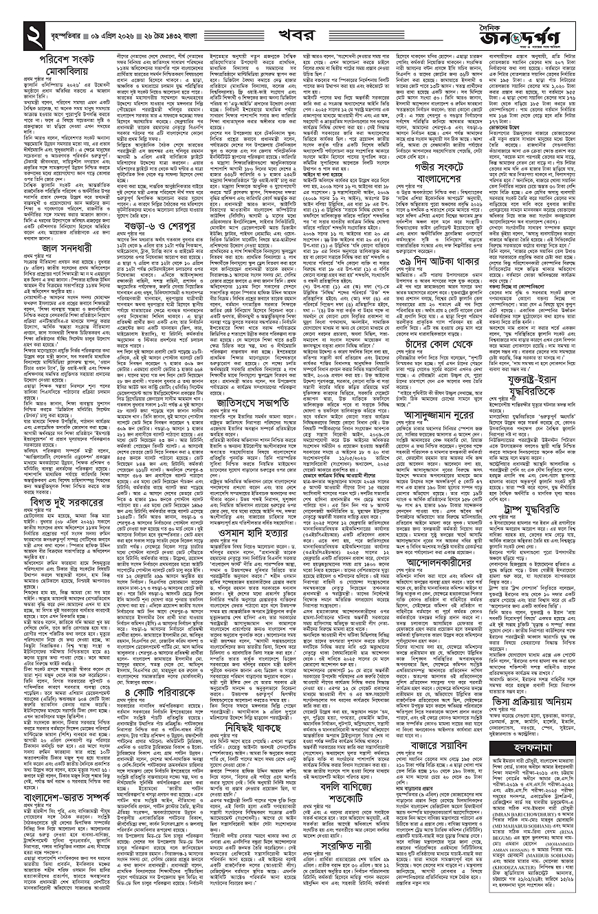 জনদর্পণ Page: 2 April 09, 2026 1 2 3 4 Page 1Page 2Page 3Page 4Page 5Page 6Page 7Page 8 × জনদর্পণ 12345678 << First << 2 >> Last >> Page no 1Page no 2Page no 3Page no 4Page no 5Page no 6Page no 7Page no 8