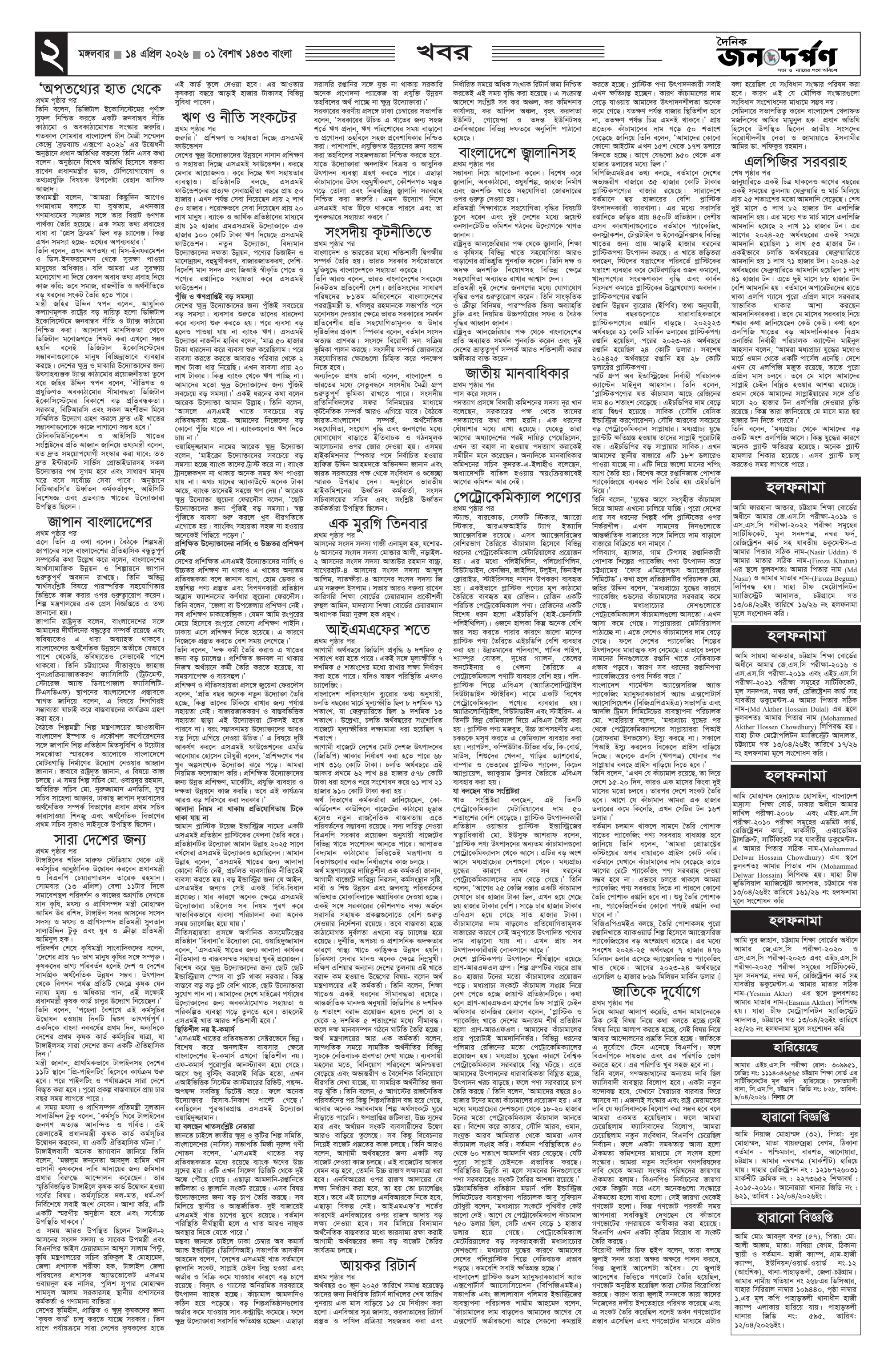 Janadarpan Page: 2 April 14, 2026 1 2 3 4 Page 1Page 2Page 3Page 4Page 5Page 6Page 7Page 8 × Janadarpan 1https://epaper.dailyjanadarpan.com/admin/epaper/page/index?ed_id=3302345678 << First << 2 >> Last >> Page no 1Page no 2Page no 3Page no 4Page no 5Page no 6Page no 7Page no 8