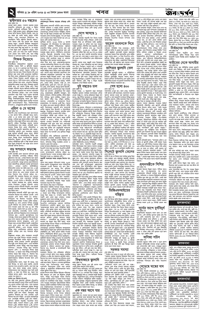 জনদর্পণ Page: 2 April 18, 2026 1 2 3 4 Page 1Page 2Page 3Page 4Page 5Page 6Page 7Page 8 × জনদর্পণ ১২3456৭৮ << First << 2 >> Last >> Page no 1Page no 2Page no 3Page no 4Page no 5Page no 6Page no 7Page no 8